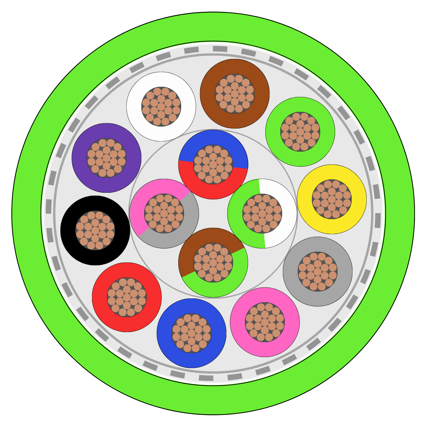 Colours acc. to DIN 47100Fourteen cores stranded in two layers